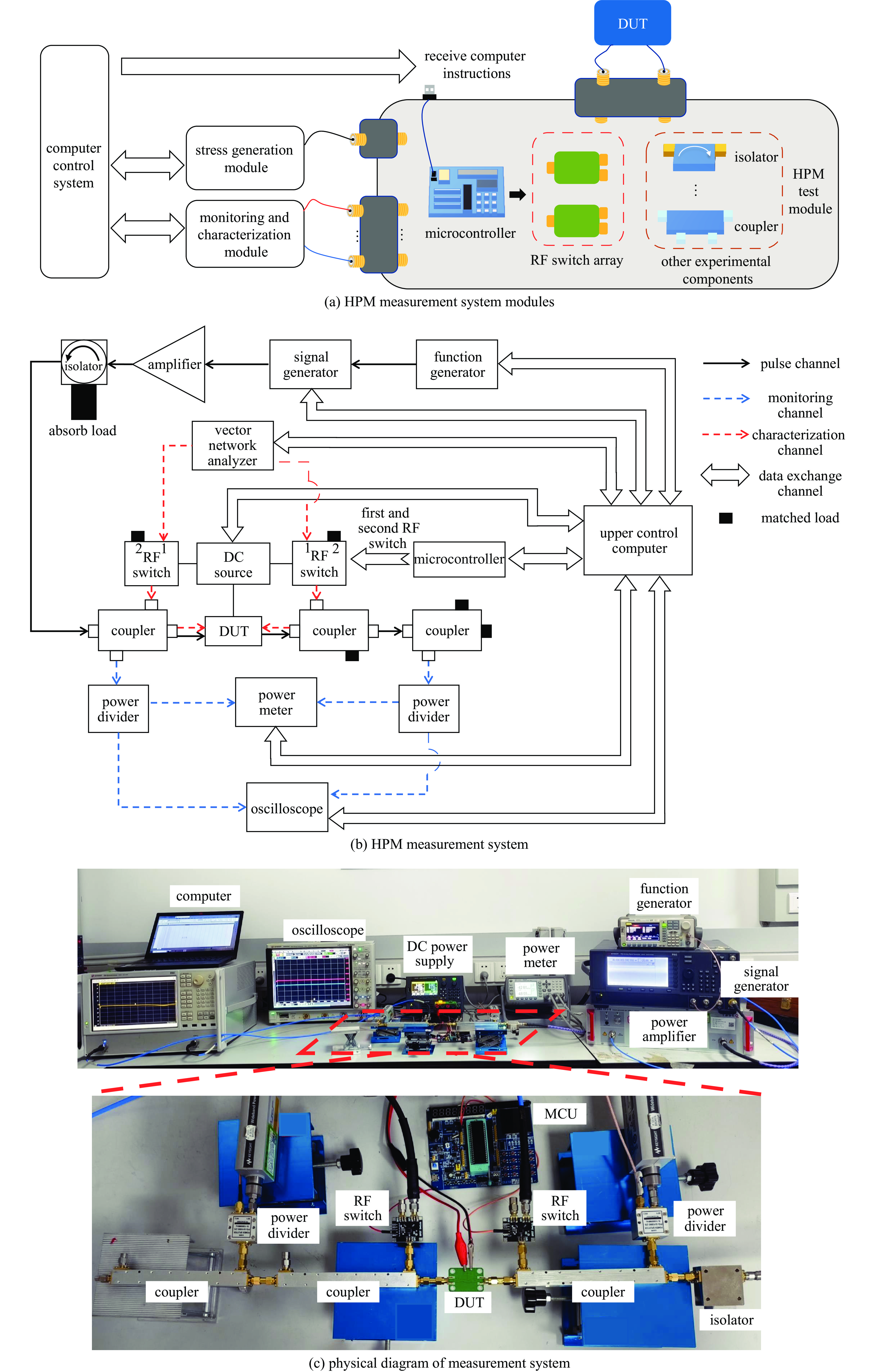 高功率微波试验是研究半导体器件在强电磁环境下损伤效应的重要手段。然而,传统试验方法主要依赖人工操作,难以精准测定器件的失效阈值,影响实验的重复性和可靠性。为提升测试精度并减少人为误差,基于半导体器件与高功率微波相互作用机制,设计了一套高功率微波脉冲自动化试验系统及标准化试验流程。以典型商用低噪声放大器为研究对象,系统评估其在高功率微波脉冲作用下的损伤阈值。通过同步测量器件的时域响应、频域特性及电流变化,并结合失效前后的参数对比分析,精确确定器件的失效阈值点。进一步地针对失效器件的一次、二次及三次损伤过程进行系统评估,并结合微观物理机制探讨损伤累积效应对器件关键参数的影响,以揭示失效机理。