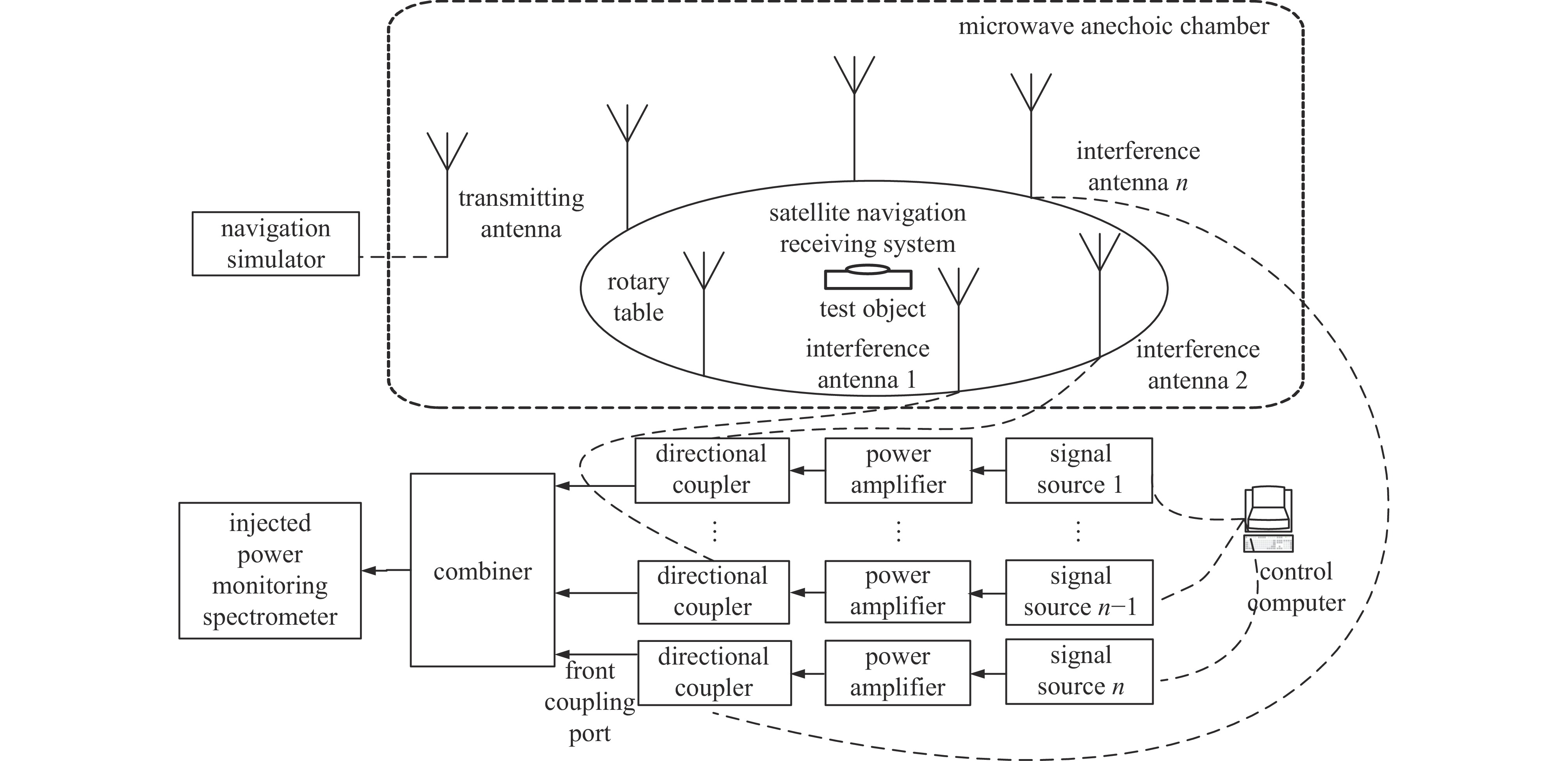 针对无人机卫星导航系统抗压制干扰评估缺乏标准化与定量化的问题,提出一种注入-辐照联合的动态试验方法。该方法构建了可复现多源、动态复杂电磁压制环境的试验体系,实现了从射频注入到空间辐照的全链路考核。以某型七阵元GNSS接收机为对象,静态试验量化了多干扰源对其空间滤波的饱和效应(干信比门限从单源106 dB降至六源60 dB)。动态试验(转速2°/s)揭示了动态场景下干扰空间几何构型变化对系统自适应算法的复杂时域-空域耦合效应:在六干扰源、70 dB干信比下,定位成功率达100%,反而优于其静态失效门限,证实了动态几何构型变化对自适应算法的复杂影响。