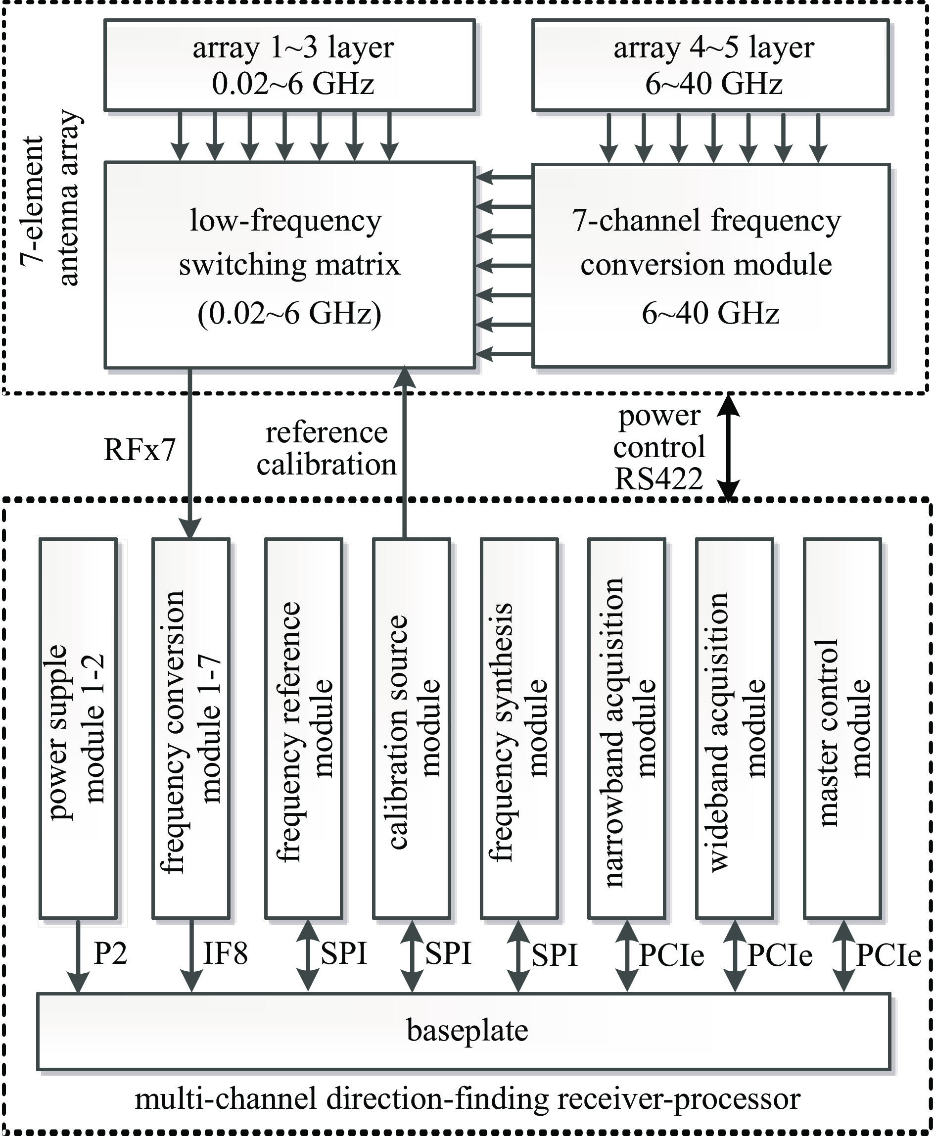 随着电子侦察、通信及雷达领域的发展,测向系统向高精度、宽频段、大动态、实时性方向提出了更高的要求。针对测向系统的宽频段需求,设计了一种20 MHz~40 GHz超宽频段范围的多通道阵列测向系统,详细介绍了系统的硬件组成和测向原理,以及系统的接收机、天线阵列、测向算法的设计实现过程。该测向系统基于多阵列天线采用空间谱测向体制进行测向,可实现20 MHz~40 GHz频段范围、瞬时最大带宽1 GHz的测向任务。测向系统已在项目中得以应用和验证。