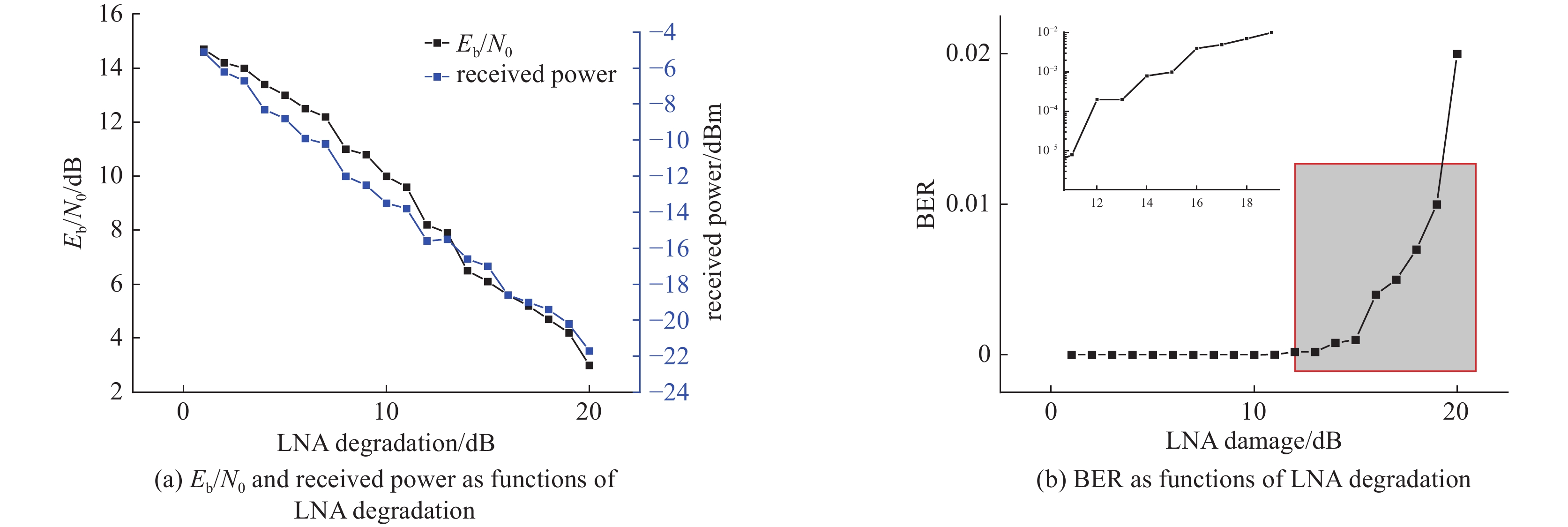 高功率微波可通过“前门”耦合毁伤通信系统的射频前端关键器件,导致系统性能降级或失效。对于相控阵通信系统,其射频通道数量多,各射频通道损伤程度并不一致,这种非对称的损伤会造成相控阵天线波束合成受到影响,导致系统性能更加恶化。通过半实物仿真实验和系统级辐照实验,开展了典型相控阵通信系统的非对称损伤效应研究。研究结果表明,高功率微波毁伤相控阵通信系统后将造成各通道出现非对称损伤,且幅相不一致性越大,尤其是相位不一致性越大,系统性能受到的额外损失也就越大。