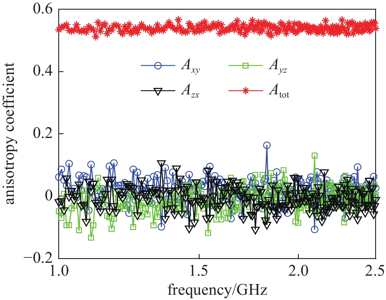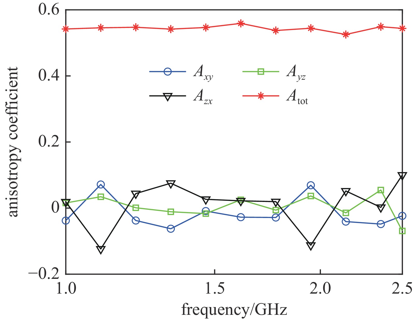 混响室的场各向异性系数定量评估了混响室性能且可用于混响室间的比较,对于混响室性能评估具有重要作用。首先对混响室场各向异性系数理论分布情况进行了介绍,明确理想情况下二维场各向异性系数应为0,三维场各向异性系数应为0.5547;然后基于三维电场探头按标准对混响室场各向异性系数进行了评估,各频点二维场各向异性系数处于[−0.1, 0.1]之间,三维场各向异性系数处于[0.5254, 0.5589]之间,整体小于−15 dB,按标准该混响室具有“良好的”性能;最后针对测试流程繁复的问题提出了基于混响室散射参数的场各向异性系数优化测试方法,所需测试次数成倍减少,试验结果显示除个别频点外整体场各向异性系数小于−15 dB,与原方法基本相同,为混响室性能评估提供了重要工程实践指导经验。