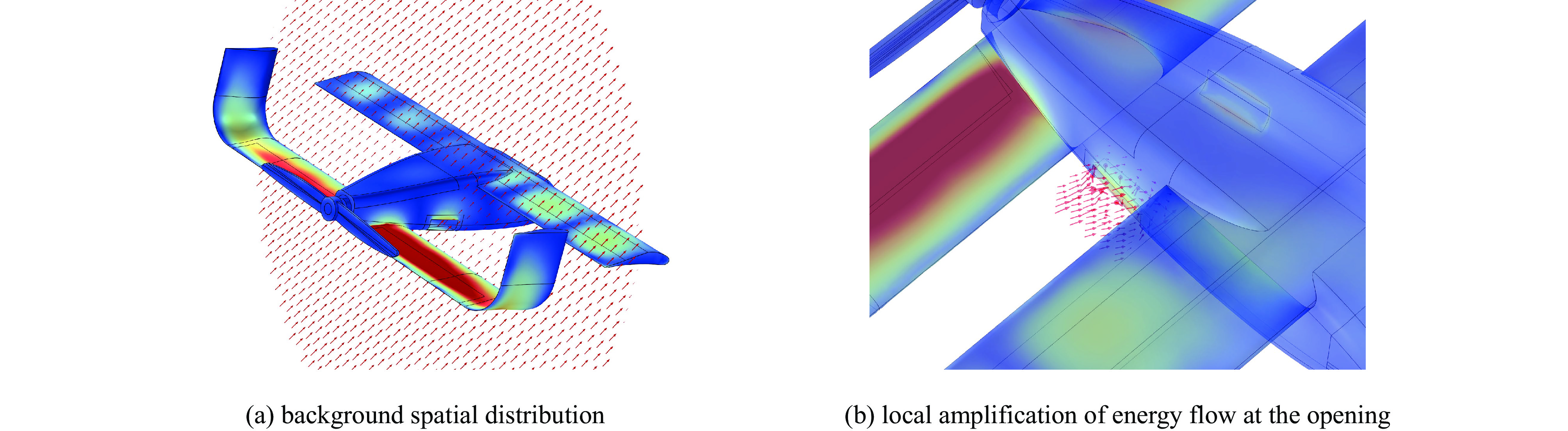 无人机在高功率微波(HPM)辐照下的后门耦合效应是当前电磁防护与反制领域的重要课题。针对某型微型无人机,开展HPM辐照下的电磁耦合特性研究,旨在揭示其在不同频率与入射角条件下的电磁响应规律与损伤机制。基于无人机运动规律,建立了融合飞行动态与姿态变化的双坐标系模型;借助COMSOL Multiphysics仿真平台,依据逐级毁伤的思路,系统分析了1~18 GHz频段内不同入射角下无人机机壳与内部飞控主板的电场与电流分布。仿真结果表明:选型无人机的典型后门耦合通道——机身侧边开孔是连接外部辐照和内部损伤的核心;随着频率和入射角增大,机壳表面电场与感应电流密度显著增强,尤其在14 GHz附近因开孔结构与Ku波段波导口面尺寸接近引发谐振,导致该频点电流密度急剧上升;飞控主板中FM25V05型芯片在14、15、16、18 GHz频点易出现过压,其中Vdd端在18 GHz时电压高达21.868 V,远超其工作阈值,可导致功能失效。本研究为HPM反无人机系统的频率优选与作战策略制定提供了理论依据与仿真支持。
