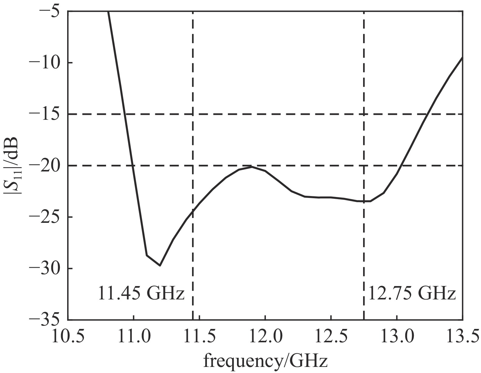 针对卫星通信系统对宽频带天线及波束可调性的需求,提出一种覆盖11.45~11.7 GHz和12.25~12.75 GHz的双频段贴片天线设计,并基于阵列分析与优化方法提升系统性能。首先,通过改进贴片结构及馈电网络设计,实现天线在目标频段内S11≤−20 dB,且在11~13 GHz范围内S11≤−15 dB。其次,构建10×10天线阵列,分析其等效全向辐射功率(EIRP)与增益噪声温度比(G/T),验证上下行链路性能指标。进一步提出基于Tabu算法的相位加权优化方法,将波束宽度扩展为等幅同相阵列的1.8倍。仿真实验结果表明,该设计可满足Ku波段卫星通信对宽频带与波束灵活性的要求,为复杂电磁环境下天线系统优化提供新思路。