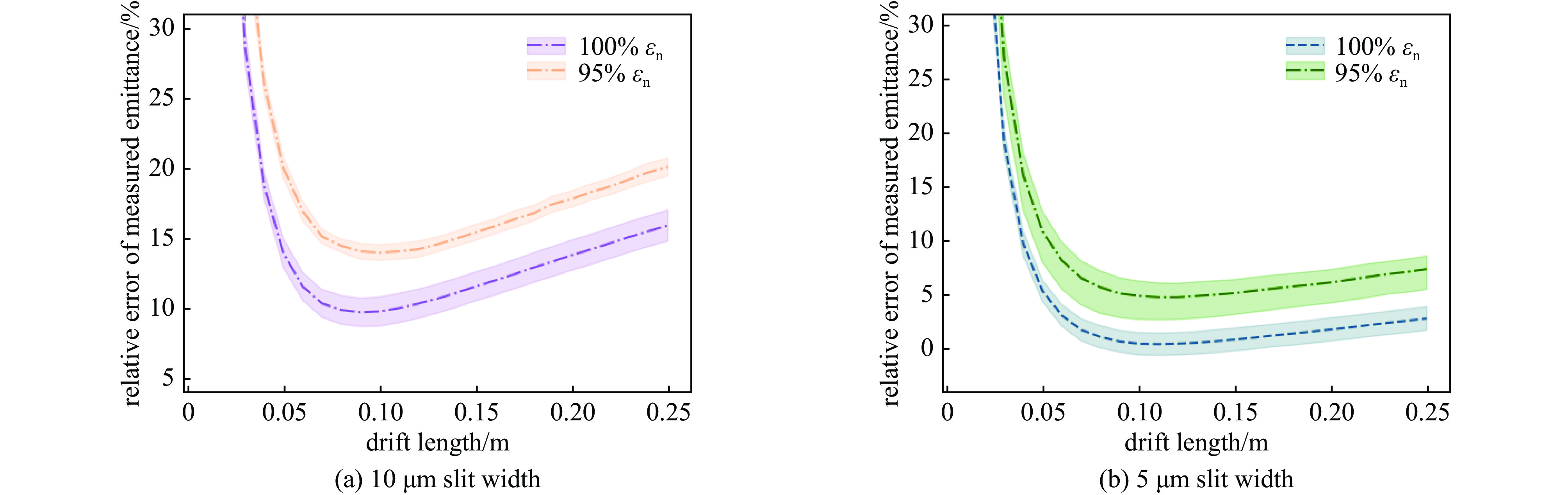 束团电荷量100 pC条件下,C波段光阴极微波电子枪出口的束流归一化发射度预计低于0.2 mm.mrad。为实现对极小束流发射度的准确测量,设计了一套基于单狭缝扫描法的发射度测量仪,并利用数值模拟对发射度仪的狭缝结构和子束团漂移距离等核心参数进行了优化。考虑动态误差的数值模拟表明:采用宽度5 μm、厚度1 mm的狭缝和0.11 m的子束团漂移距离时,95%发射度的测量偏差低于5%。