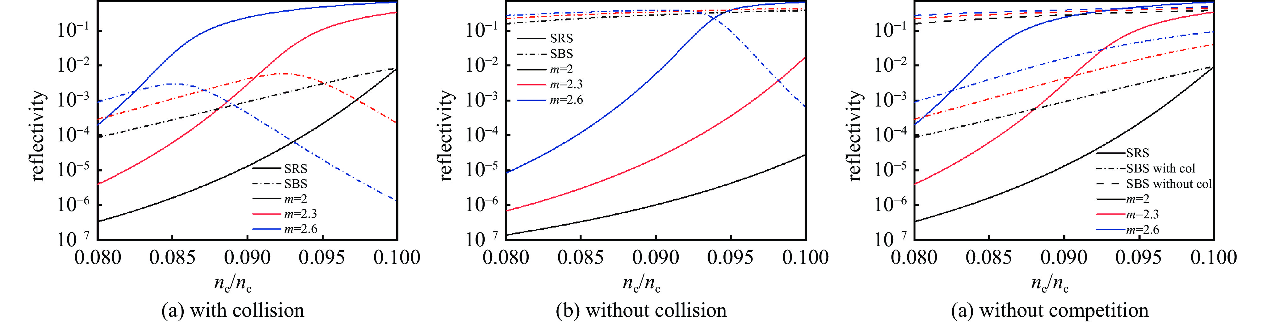 背向受激拉曼散射与背向受激布里渊散射是激光聚变中广泛存在的两种激光等离子体不稳定性。为了深入理解两者之间的竞争过程,通过求解包含超高斯电子分布函数的五波耦合方程,并考虑了离子-离子碰撞对离子极化率的修正,分析了CH等离子体中Langdon效应和离子碰撞对两种不稳定性竞争关系和反射率的影响,研究结果表明,Langdon效应既可以改变背向受激拉曼散射与背向受激布里渊散射的色散关系,也可以改变电子等离子体波和离子声波的阻尼,而离子-离子碰撞的修正则主要是改变背向受激布里渊散射的色散关系和离子声波的阻尼,两者都可以使背向受激拉曼散射在密度相对更低的条件下在与背向受激布里渊散射的竞争中占据优势。