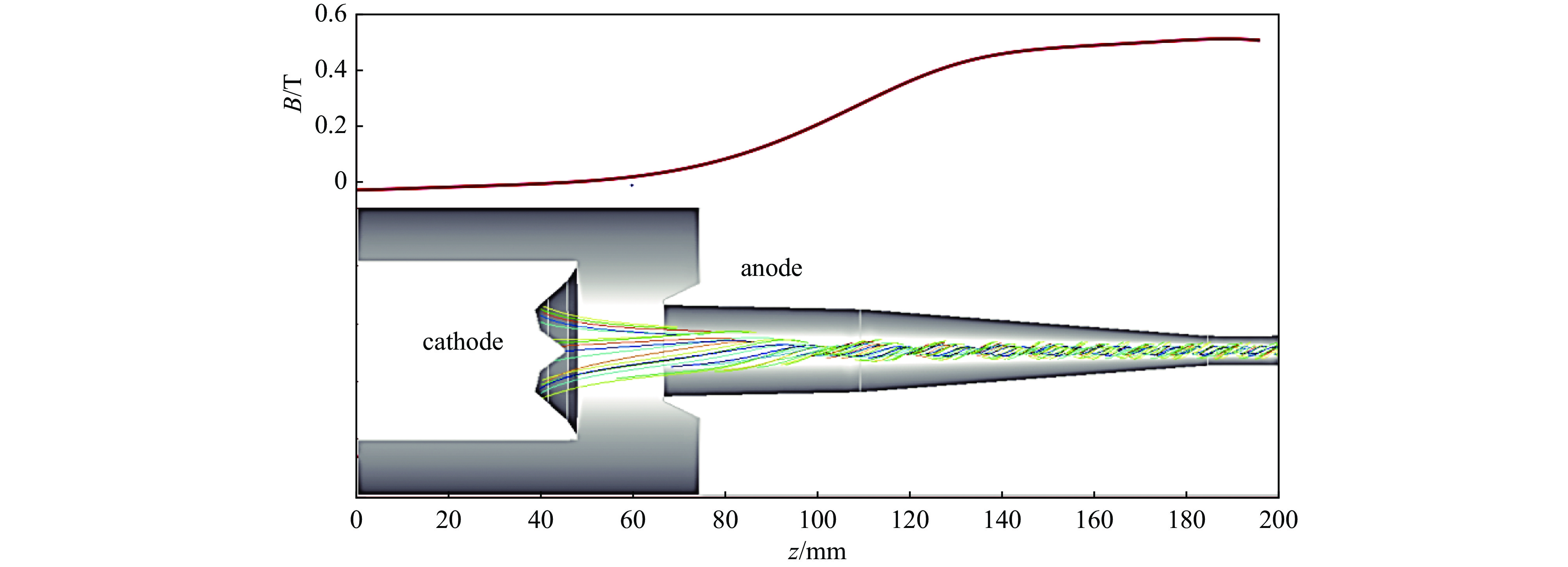 介绍了大回旋电子枪的形成理论,分析了电子注在非理想会切磁场中的运动过程,并利用CST和E-gun对电子枪进行建模和仿真分析。研究了磁场、工作电压、电流对大回旋电子注质量、轨迹的影响,为Ka波段二次谐波大回旋电子注回旋行波管实验测试寻找最佳工作点提供指导,同时降低电子枪在实验过程中的损坏风险。研究表明,电子枪的工作电压过低时,速度比较大,出现电子回轰的现象,对阴极不利;同时,阴极的反向磁场过高时,电子回旋半径过大,会导致电子轰击在电子枪壁上损坏电子枪。最后对比了两种软件的计算结果,分析了各自的特点。
