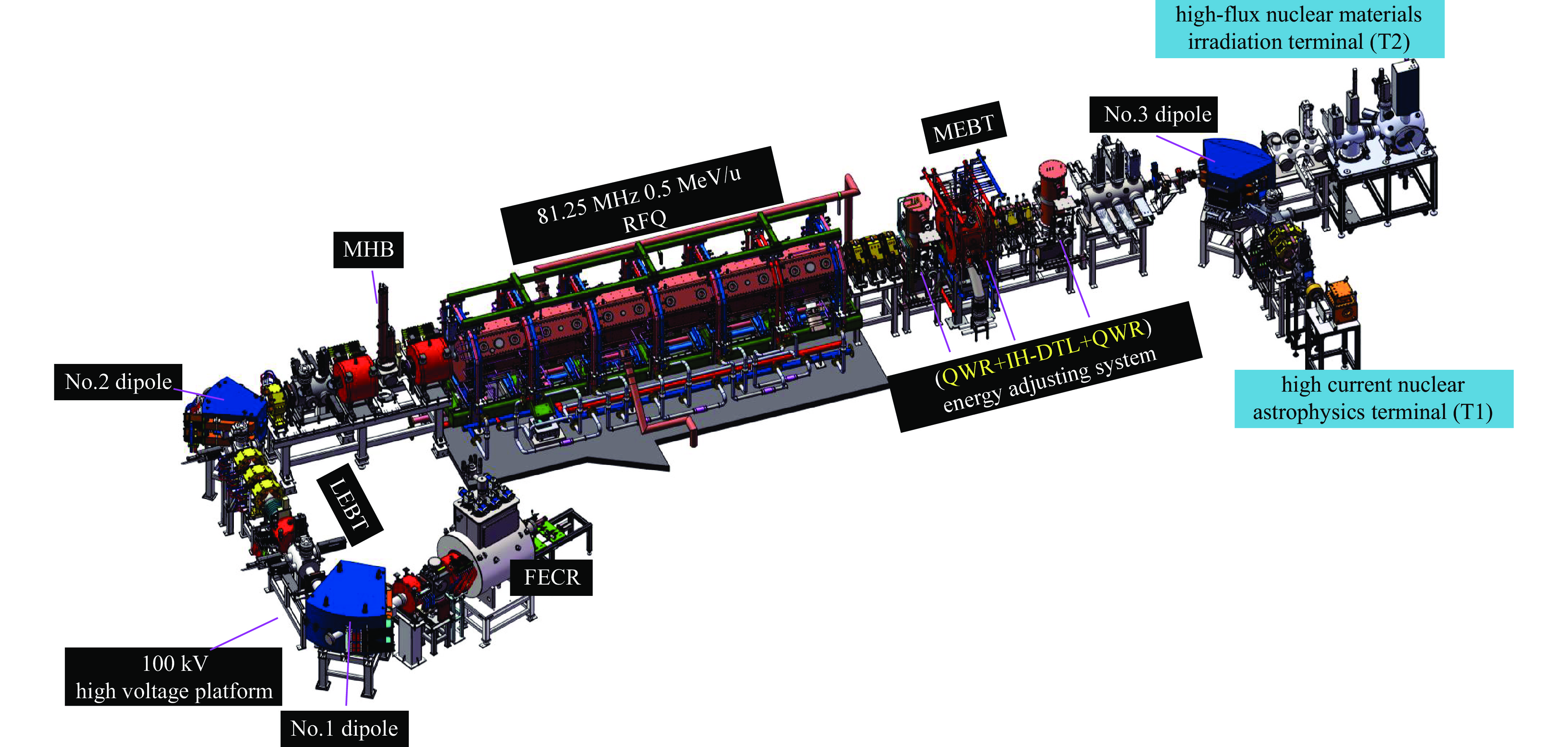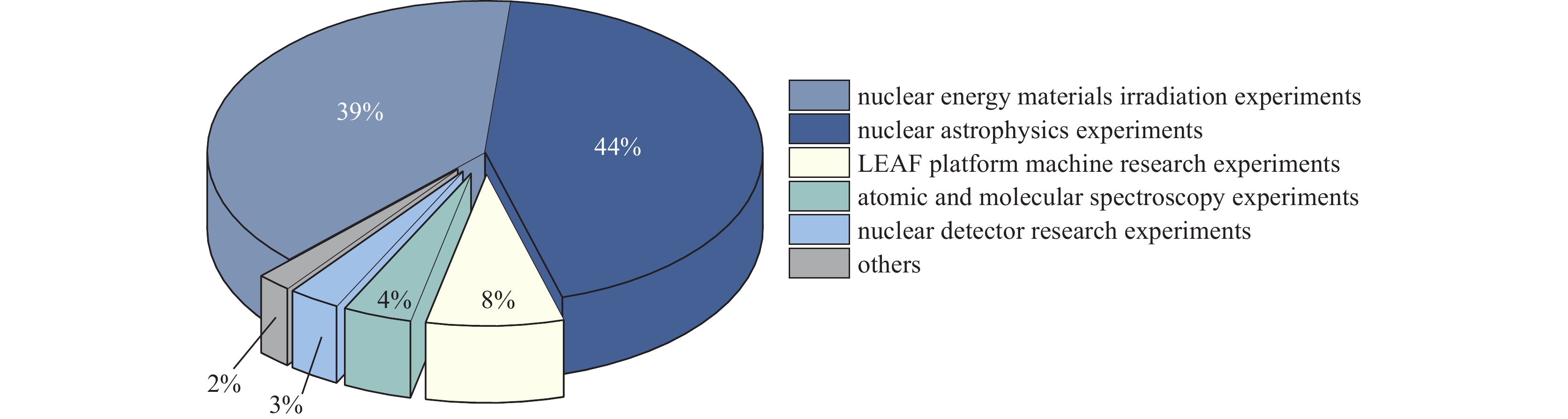 低能量强流高电荷态重离子加速器装置(LEAF)是中国科学院近代物理研究所承担的国家重大科研仪器项目,旨在构建一台具备高电荷态、高流强、全谱系离子加速能力的低能重离子综合实验装置。系统介绍了该装置的结构、核心部件设计参数及束流调控策略,并重点报告了装置试运行期间在束流加速能力、多离子混合束制备及低能散碳离子束调控等方面取得的代表性进展。截至目前,LEAF已累计为终端实验提供超过13 000小时束流支持,覆盖质荷比A/q=2~7的多种离子种类,实现了高电荷态、高流强重离子束流的稳定加速。平台构建了适用于协同辐照研究的“鸡尾酒束”运行模式,并建立了具备高流强与低能散特性的12C2+束流系统,用于伽莫夫能区核反应的精密测量。最后,文章结合终端实验需求,提出了装置未来的发展方向,包括调能系统拓展与三离子协同供束能力增强等,以期进一步提升平台对核天体物理、核能材料等领域的支撑能力。