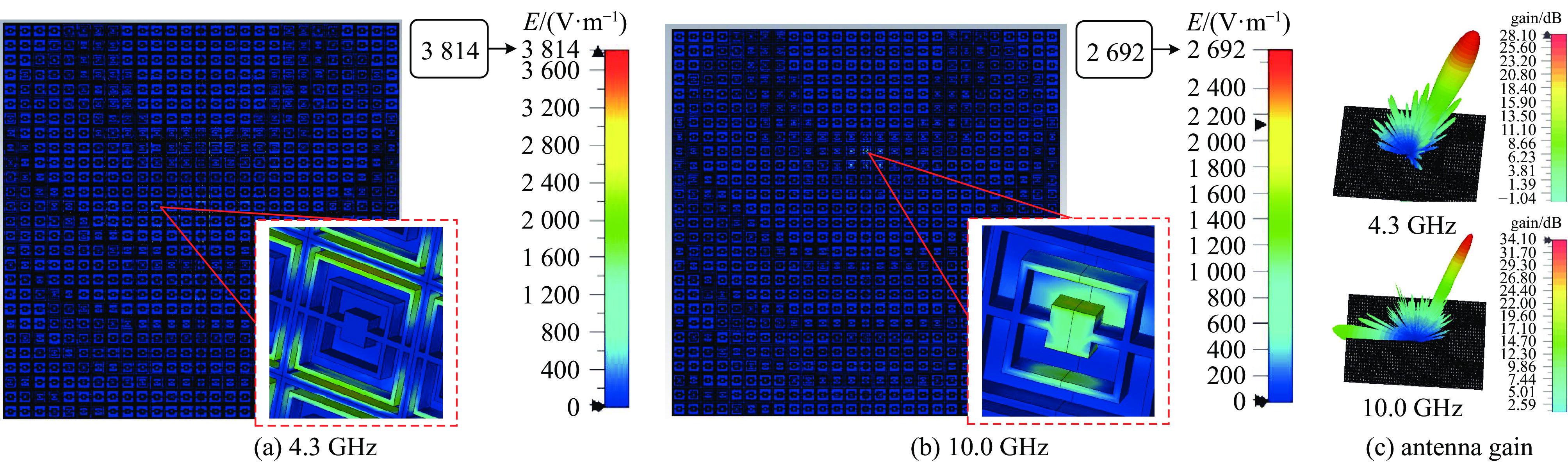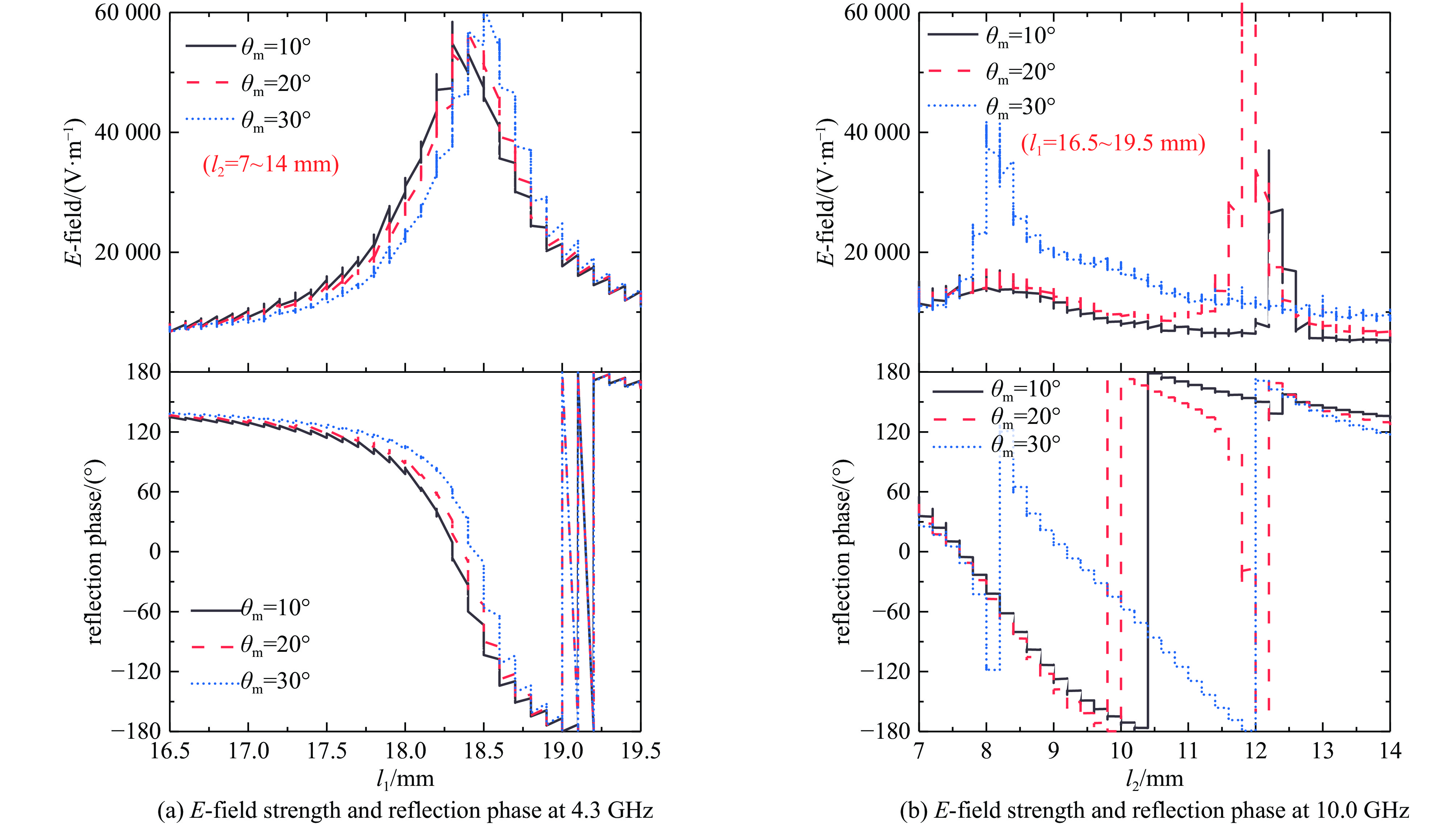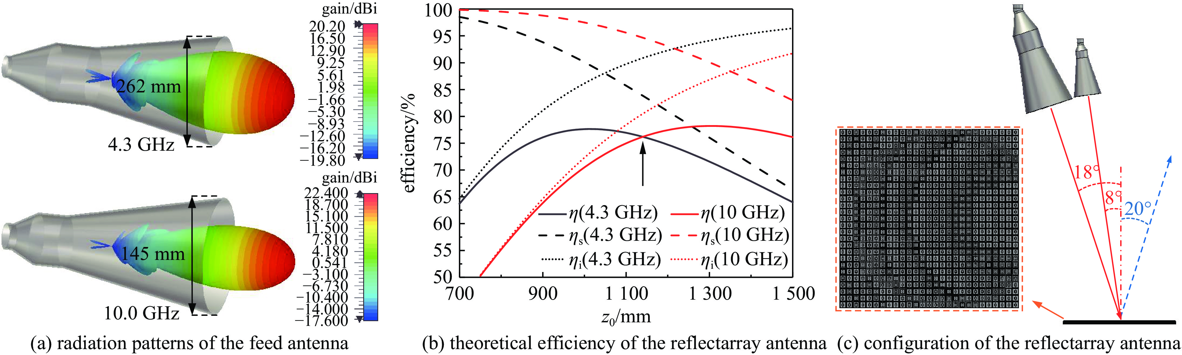 基于反射阵列天线基础理论并利用参考相位优化方法,提出了一种适用于高功率微波双频反射阵列天线的相位综合方法。该方法充分考虑天线单元在不同入射波角度下的反射相位状态、电场强度以及与结构参数之间的对应关系,并进一步引入了筛选阈值的概念以提升系统功率容量,同时通过参考相位优选来缓解因筛选阈值而丢失掉小部分相移曲线引起的口径效率降低。该方法能够简化双频反射阵列天线流程并有效提升天线性能。为了验证方法的正确性,设计了一种多方框形状的改进型反射阵列天线单元,并用所提出方法开展双频反射阵列天线设计。该27×27单元阵列的工作频率为4.3 GHz和10 GHz,口径效率分别达到了67.37%和48.69%,真空中的功率容量达到数百兆瓦,有效验证了所提出相位综合方法的适用性。